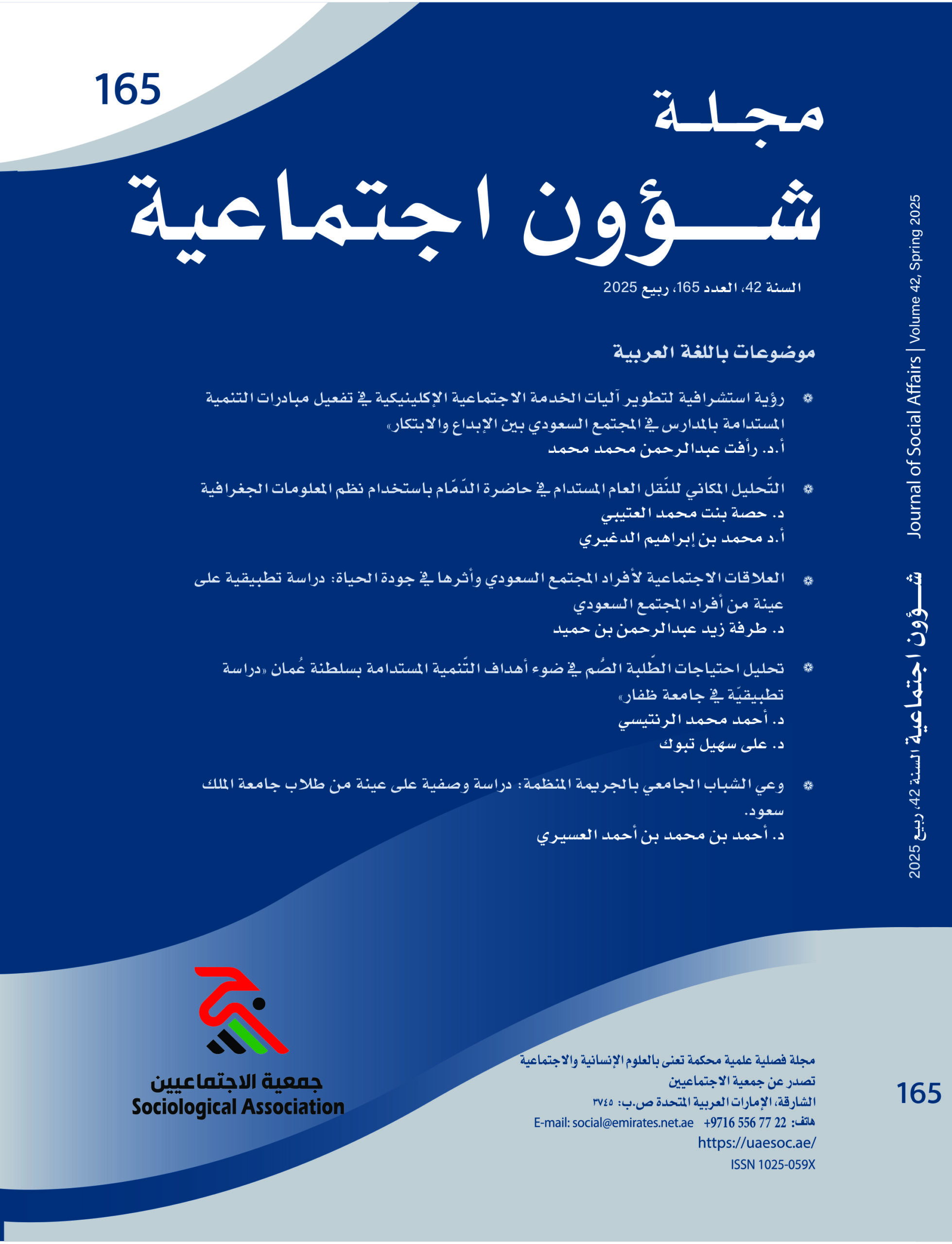 وبصدور هذا العدد من مجلة شؤون اجتماعية تكون المجلة مستمرة دون انقطاع، بل في تطور مستمر، معززة بذلك دورها ومكانتها بين المجلات العربية المحكّمة، وفي كل مرة تصدر المجلة تجسد رؤية جديدة وأسلوباً متطوراً، يعد رافداً حقيقياً لحركة البحوث والدراسات العلمية المحكّمة في دولة الإمارات العربية المتحدة والعالم العربي، وإنجازاً أساسياً يبرز هوية العلوم الاجتماعية بفروعها وأصولها التطبيقية، بغية استفادة الباحثين والأساتذة والطلبة والمهتمين منها لتعزيز مكانة البحث العلمي في المجتمع العربي كونه أحد أهم عوامل التطور والرقي والازدهار لأية أمة.